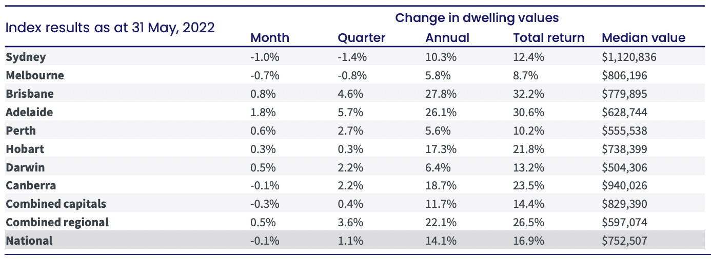"CoreLogic Home Value Index records the first national fall since September 2020, as declines accelerate across Sydney and Melbourne in May" -