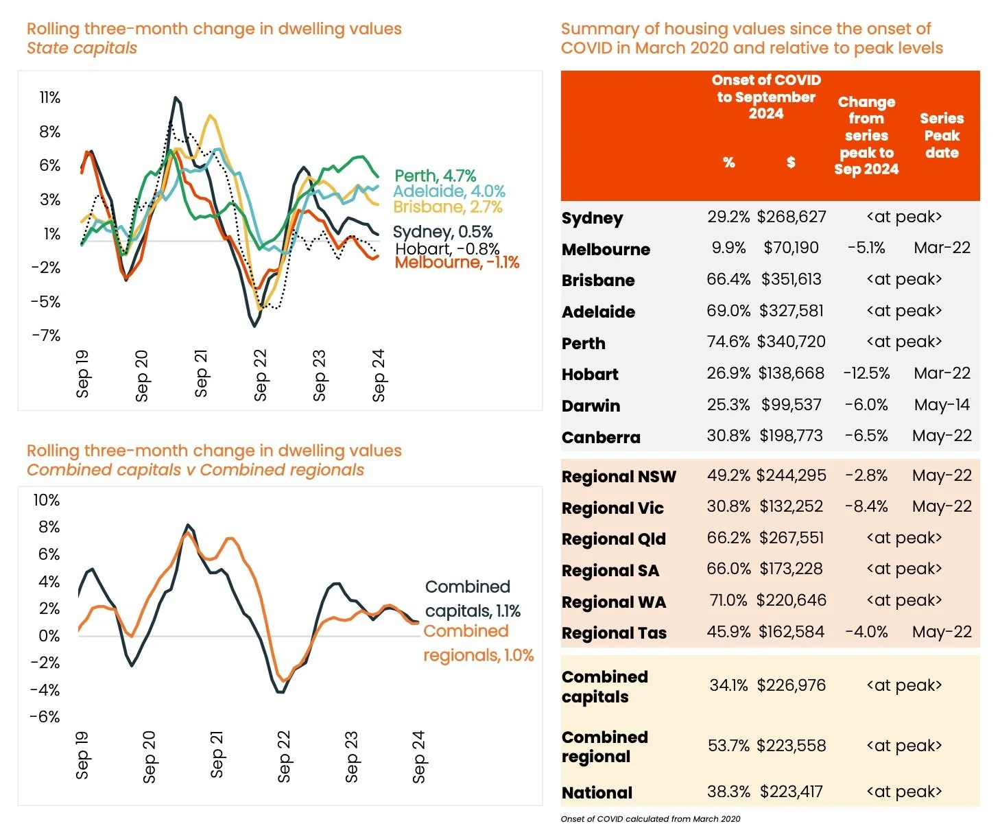 Housing values increased by 1.0% nationally in the September quarter, the smallest rise in the Home Value Index since March 2023, when the market began recovering.