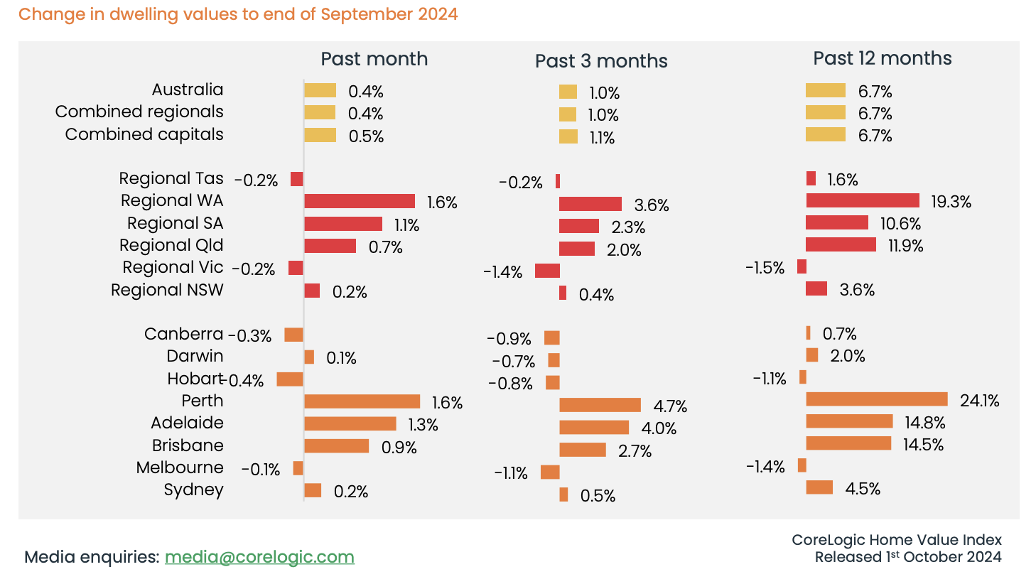 “Home values inch higher nationally as growth loses momentum.” CoreLogic Australia HVI Report Released October 1st 2024.
