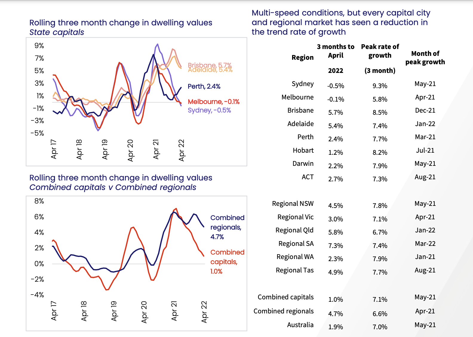 Brisbane, Adelaide, and Regional Areas lead the way with increasing values; however, we have witnessed the peak and now seeing a slowdown in the property market and a stabilising of Home Values.