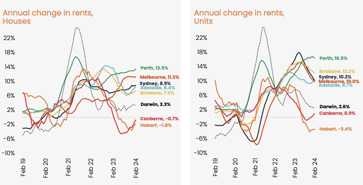 The re-acceleration in rents is primarily seasonal in the first quarter of each year, a historical trend. However, there has also been a pick-up in the annual growth trend for rents, with the national rental index up from a recent low of 8.1% in October last year to 8.5% over the 12 months ending February.